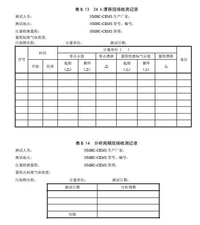 b) 無(wú)自動(dòng)校準(zhǔn)功能的NMHC-CEMS 每7 d 至少校準(zhǔn)一次儀器零點(diǎn)和量程,同時(shí)測(cè)試并記錄零點(diǎn)漂移和量程漂移;