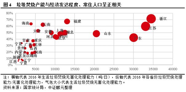 目前在人口密度較高的發(fā)達(dá)國家,焚燒法已成為城市生活垃圾處理的主要方法并得到廣泛應(yīng)用。我國垃圾處理“十三五”規(guī)劃提出,經(jīng)濟(jì)發(fā)達(dá)地區(qū)和土地資源短缺、人口基數(shù)大的城市,優(yōu)先采用焚燒處理技術(shù),具備條件的直轄市、計(jì)劃單列市和省會(huì)城市(建成區(qū))要實(shí)現(xiàn)原生垃圾“零填埋”,我國垃圾焚燒方式處理量占比從2010年的18.81%已上升到2016年的37.50%。經(jīng)濟(jì)發(fā)達(dá)的東部和沿海地區(qū)土地資源緊缺,焚燒處理占比已超過40%,經(jīng)濟(jì)相對(duì)落后的西部地區(qū),因地廣人稀,現(xiàn)階段以投資規(guī)模較小的填埋為主要處理方式。