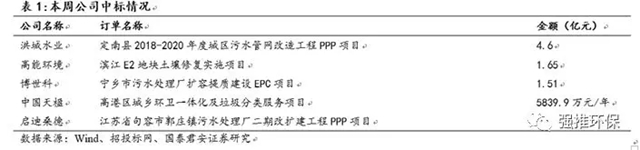根據(jù)公告與招投標(biāo)信息統(tǒng)計(jì),本周環(huán)保公司中新增訂單5單、中標(biāo)總金額7.76億;新增訂單前三名分別為洪城水業(yè)、高能環(huán)境和博世科。