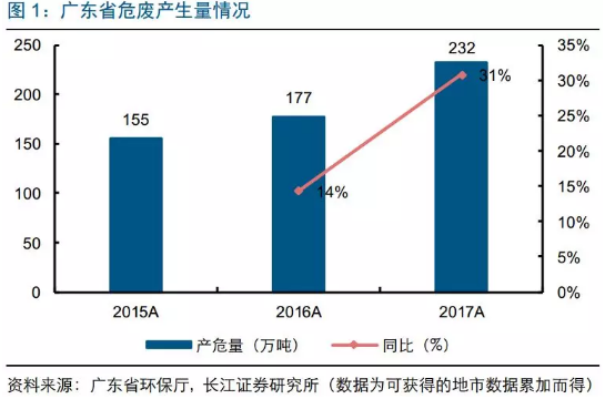 廣東省2017年危廢產(chǎn)量同比增31%至232萬噸