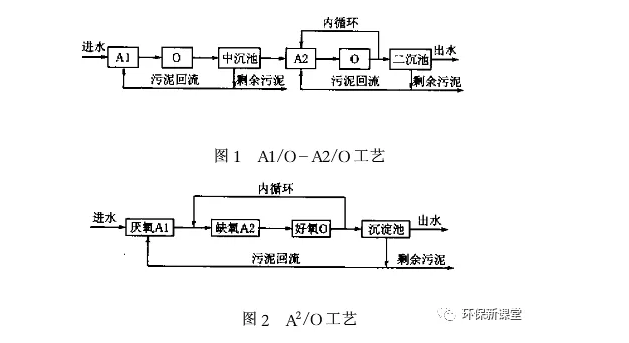 第一類是設立中間沉淀池,搞兩套污泥回流系統(tǒng)使不同泥齡的微生物居于前后兩級(見圖1),第一級泥齡很短,主要功能是除磷;第二級泥齡較長,主要功能是脫氮。該系統(tǒng)的優(yōu)點是成功地把兩類泥齡不同的微生物分開。但是,這類工藝也是存在局限性。第一,兩套污泥回流系統(tǒng),再加上中間沉淀池和內循環(huán),使該類工藝流程長且比較復雜。第二,該類工藝把原來常規(guī)A2/O(見圖25)工藝中同步進行的吸磷和硝化過程分離開來,而各自所需的反應時間又無法減少,因而導致工藝總的停留時間變長。第三,該工藝的第二級容易發(fā)生碳源不足的情況,致使脫氮效率大受影響。此外,由于吸磷和硝化都需要好氧條件,工藝所需的曝氣量也可能有所增加。