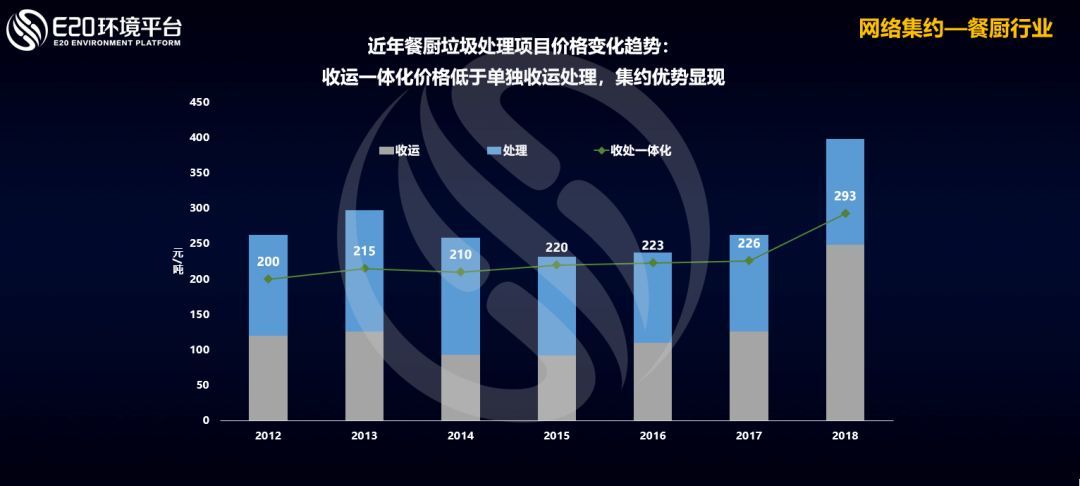 目前,餐廚行業(yè)收運(yùn)一體化價(jià)格總體低于單獨(dú)收運(yùn)處理價(jià)格。