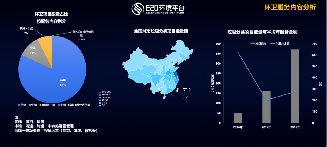 數(shù)據(jù)表明,垃圾分類的市場(chǎng)化項(xiàng)目正在逐步出現(xiàn),項(xiàng)目數(shù)量逐年走高,年服務(wù)金額大概在三百萬左右。(相關(guān)閱讀→ 1. 【熱議】何晟:我們要怎樣的垃圾分類市場(chǎng)化?; 2. 上半年超5億項(xiàng)目落入7類企業(yè)手中,垃圾分類攪動(dòng)固廢市場(chǎng); 3. 告別小打小鬧——今年,合同金額超千萬的垃圾分類項(xiàng)目已達(dá)8個(gè); 4. 近兩月80余個(gè)垃圾分類項(xiàng)目盤點(diǎn) 且看需求井噴背后; 5. “環(huán)衛(wèi)+X”項(xiàng)目頻出,市場(chǎng) 從“小環(huán)衛(wèi)”走向“大環(huán)衛(wèi)”)