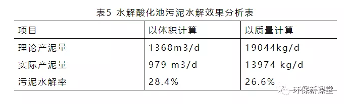 (4) 水解酸化池在截留大量懸浮物和去除部分BOD5的同時(shí),對(duì)污泥還有一定的水解率[5],通過(guò)某水務(wù)某污水處理廠長(zhǎng)時(shí)間的運(yùn)行發(fā)現(xiàn),水解酸化池理論產(chǎn)泥量在19044kg/d,而實(shí)際處理泥量在13974kg/d,根據(jù)計(jì)算污泥水解率約在26.6%;以體積計(jì)算,污泥水解率在28.4%,減輕了脫水機(jī)的運(yùn)行負(fù)荷,同時(shí)降低了運(yùn)行費(fèi)用,由此可以看出水解酸化池57.62%的COD去除率,其中一部分通過(guò)剩余污泥進(jìn)行排放,其他可能通過(guò)硫酸鹽還原、氫氣的產(chǎn)生等途徑降解。