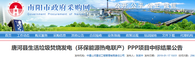 河南南陽唐河縣生活垃圾焚燒發(fā)電(環(huán)保能源熱電聯(lián)產(chǎn))PPP項(xiàng)目發(fā)布中標(biāo)結(jié)果公告,北京首創(chuàng)環(huán)境投資有限公司成為中標(biāo)的社會(huì)資本方。