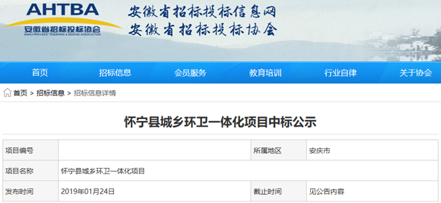 原標(biāo)題:金沙田中標(biāo)2.4億安徽省懷寧縣城鄉(xiāng)環(huán)衛(wèi)一體化項(xiàng)目