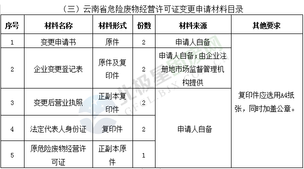 三、云南省危險(xiǎn)廢物經(jīng)營許可證變更申請材料清單