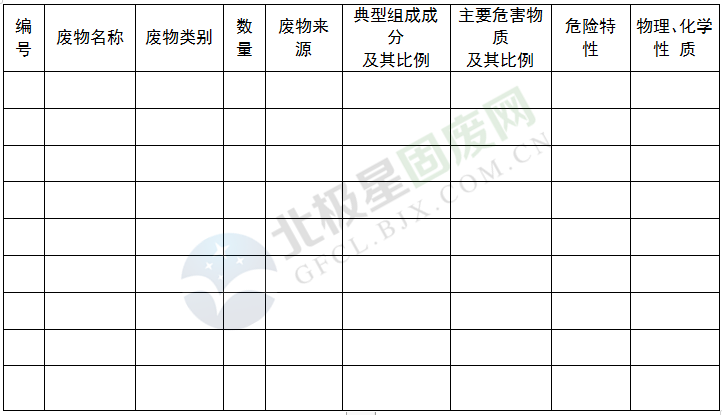 附:核準(zhǔn)經(jīng)營的危險(xiǎn)廢物類別、經(jīng)營規(guī)模和處置方式明細(xì)表、污染防治措施、環(huán)境監(jiān)測制度、新產(chǎn)生的危險(xiǎn)廢物的管理計(jì)劃等。