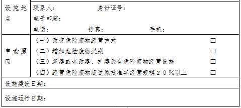 云南省危險(xiǎn)廢物經(jīng)營許可證申 請 表