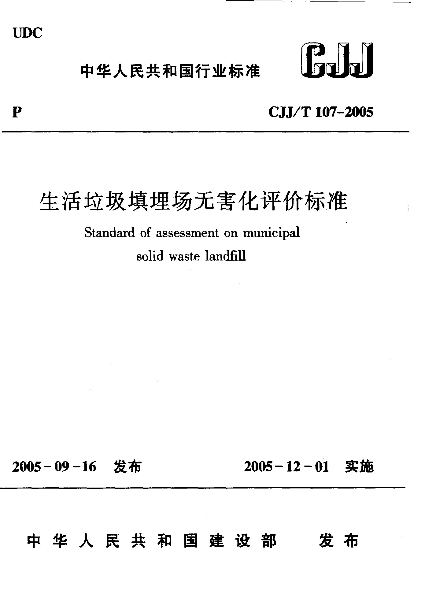 生活垃圾填埋場無害化評價(jià)標(biāo)準(zhǔn)(CJJ/T 107-2015)