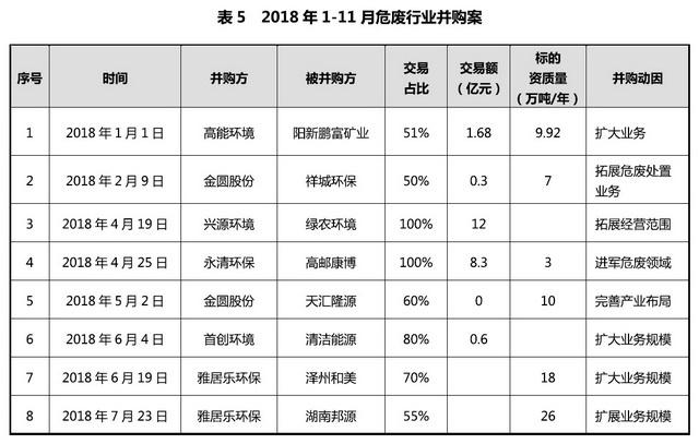 高門檻、高利潤、嚴監(jiān)管、大缺口”的危廢處理行業(yè)正在成為各路資本追逐的“香餑餑”。不完全統(tǒng)計結果顯示,僅2018年全國危廢行業(yè)兼并購數(shù)量就超過10起,資本的介入也加快了行業(yè)整合。