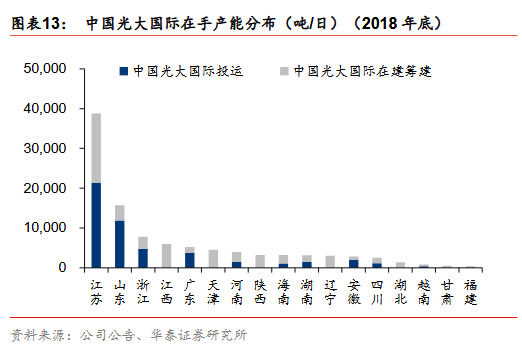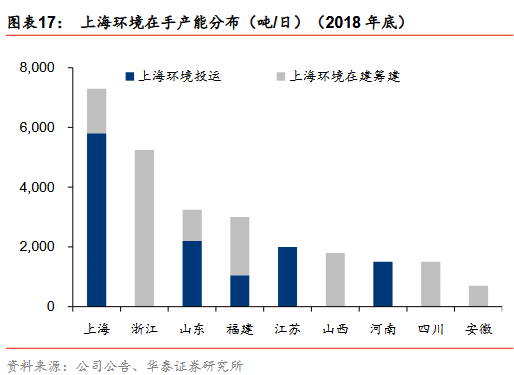 產(chǎn)能加速釋放:17年城市新增4.2萬噸/日(2012-2016年均新增3.2萬噸/日);17縣城投運(yùn)速度提速,我們估計17新增3.2萬噸/日(十二五年均新增0.4萬噸/日)。按照選取典型上市公司(18年已投運(yùn)產(chǎn)能市占率29%)投產(chǎn)規(guī)劃,18-20年累計投運(yùn)增速24%/24%/33% vs 按照十三五規(guī)劃測算18-20年累計投運(yùn)產(chǎn)能增速23%/19%/16%,上市公司投產(chǎn)增速高于行業(yè)增速,表明1)行業(yè)增速可能超預(yù)期或 ;2)上市公司已投運(yùn)市占率將提升。分區(qū)域:山東/上海/寧夏等省市提前完成十三五目標(biāo),廣東/北京/安徽/江蘇等19-20年仍具較大空間,中西部新增投運(yùn)崛起,東部部分地區(qū)仍有空間。