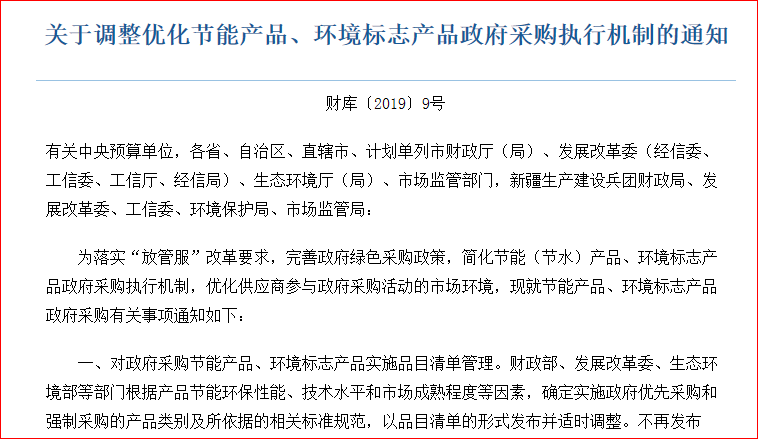 關(guān)于調(diào)整優(yōu)化節(jié)能產(chǎn)品、環(huán)境標(biāo)志產(chǎn)品政府采購執(zhí)行機制的通知