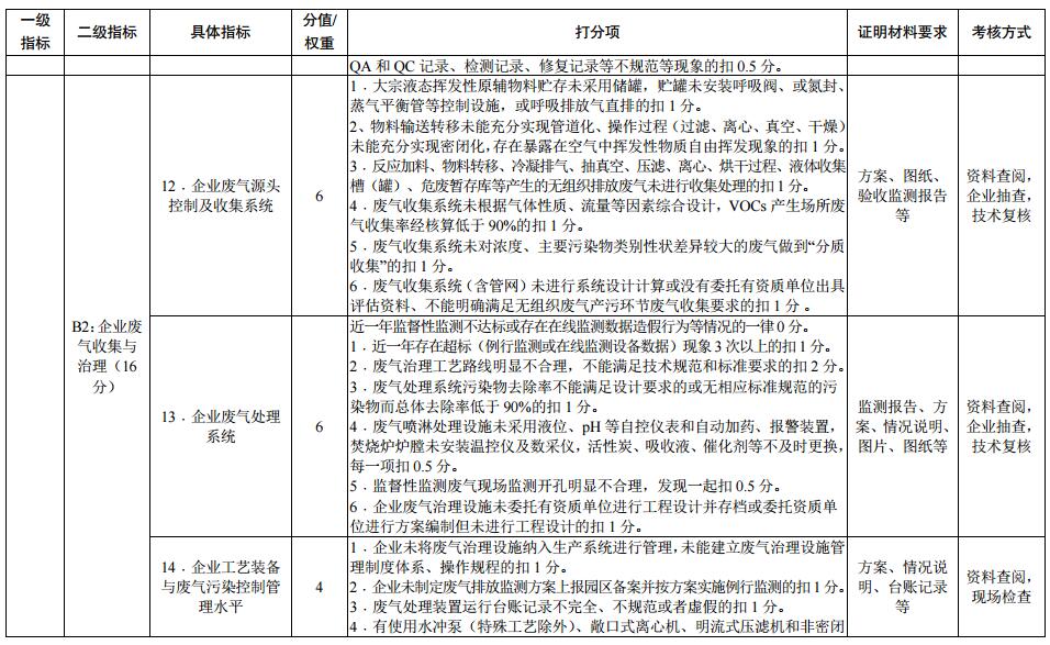 3﹒企業(yè)應(yīng)根據(jù)各類廢氣特性、產(chǎn)生量、污染物濃度、溫度、壓力等因素綜合分析選擇合適、高效的末端處理工藝,采用吸附、催化凈化、焚燒等工藝的應(yīng)符合相關(guān)標(biāo)準(zhǔn)規(guī)范要求;無相應(yīng)標(biāo)準(zhǔn)規(guī)范的,污染物總體去除率不低于90%。廢氣治理設(shè)施應(yīng)納入生產(chǎn)系統(tǒng)進(jìn)行管理,配備連續(xù)有效的自動(dòng)監(jiān)測(cè)以及記錄設(shè)施,提高廢氣處理的自動(dòng)化程度,噴淋處理設(shè)施應(yīng)配備液位、PH等自控儀表、采用自動(dòng)加藥。園區(qū)實(shí)行統(tǒng)一的LDAR管理制度,統(tǒng)一評(píng)估企業(yè)LDAR實(shí)施情況。