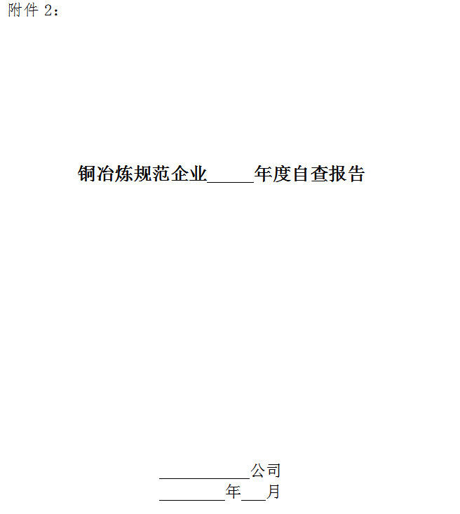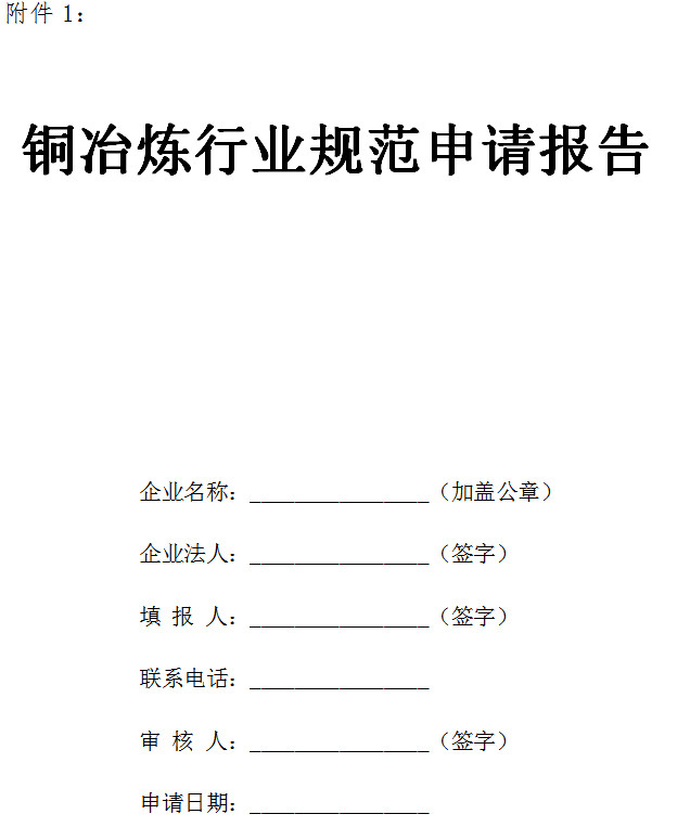 2.凡已建成投產(chǎn)1年以上(含1年)的銅冶煉企業(yè),均可依據(jù)《銅冶煉行業(yè)規(guī)范條件》申請審核。申請規(guī)范企業(yè)須編制《銅冶煉行業(yè)規(guī)范申請報告》(見附件1),并按要求提供相關(guān)材料,企業(yè)法人(或代表)、填報人和審核人須對申請材料的完整真實性負(fù)責(zé)并承擔(dān)相應(yīng)責(zé)任。