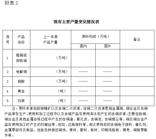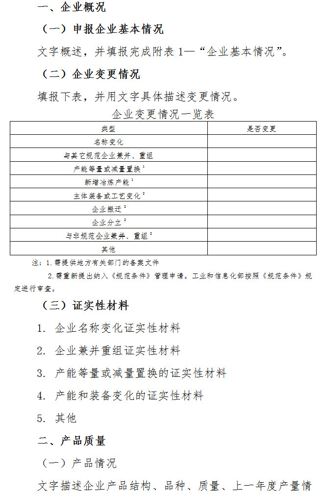已公告的規(guī)范企業(yè)如發(fā)生重大變化(異地改造,原地改造且主體工藝發(fā)生變化)需提出變更申請,重新填報《銅冶煉行業(yè)規(guī)范申請報告》,經(jīng)地方工業(yè)主管部門核實后,上報工業(yè)和信息化部;中央企業(yè)直接上報工業(yè)和信息化部。工業(yè)和信息化部實時進(jìn)行變更公告。
