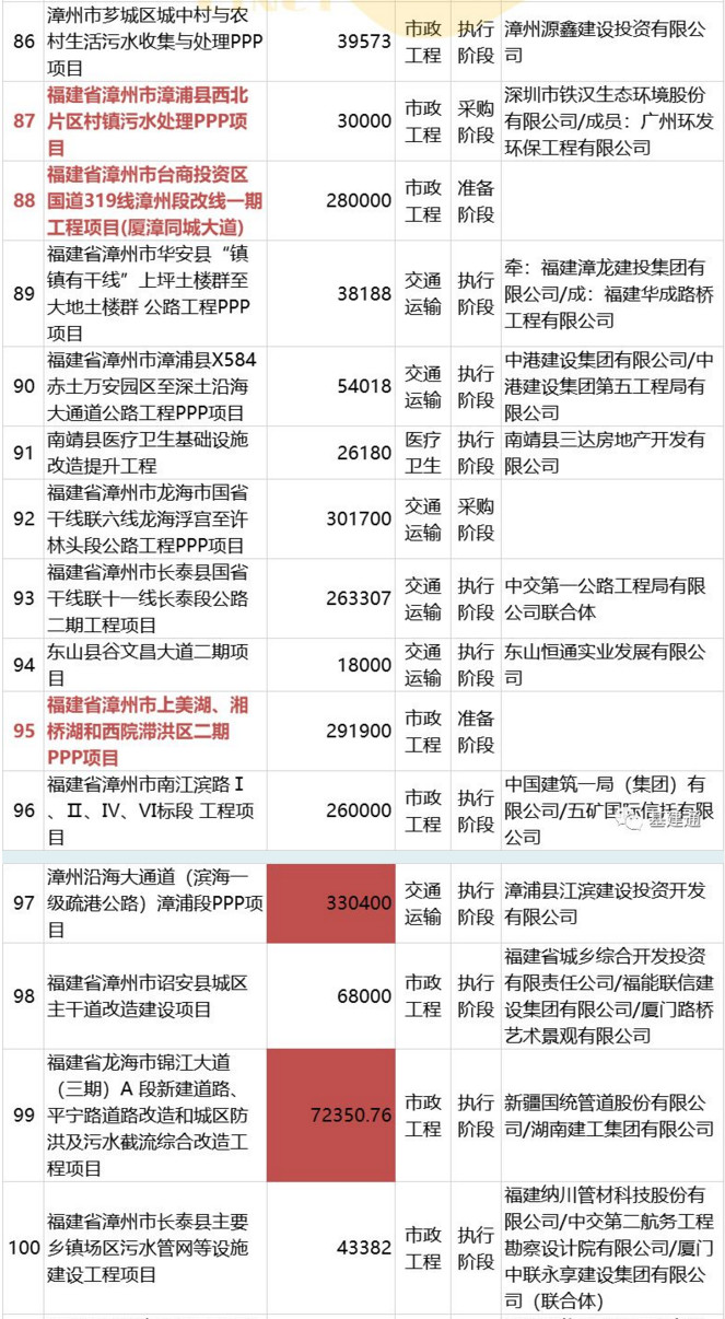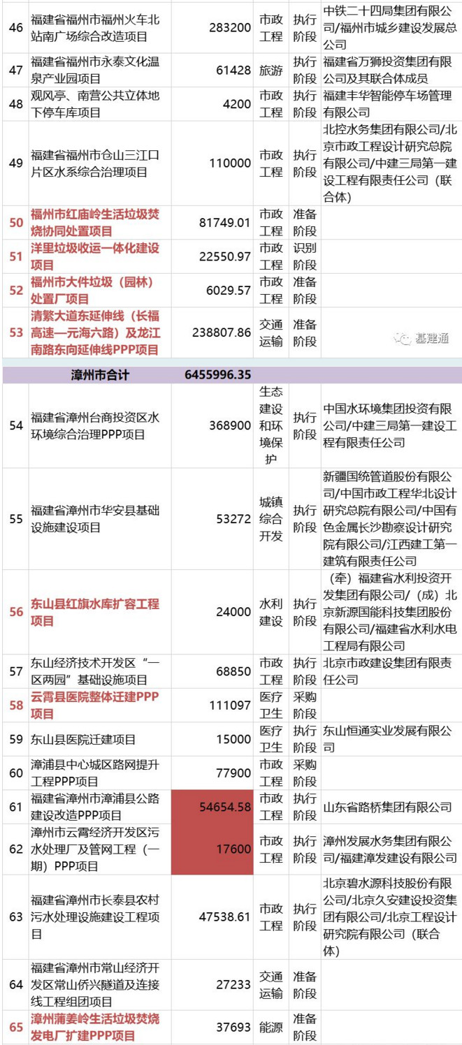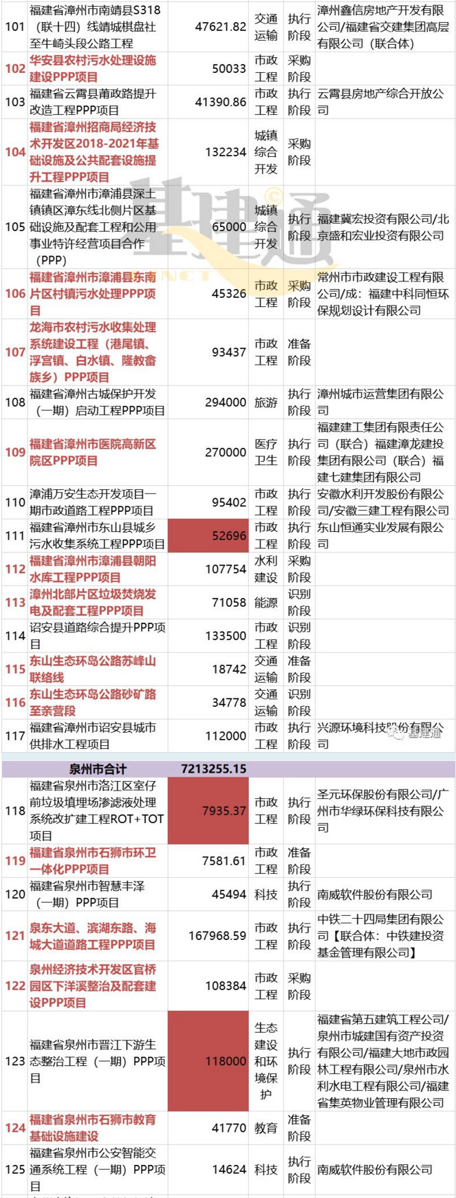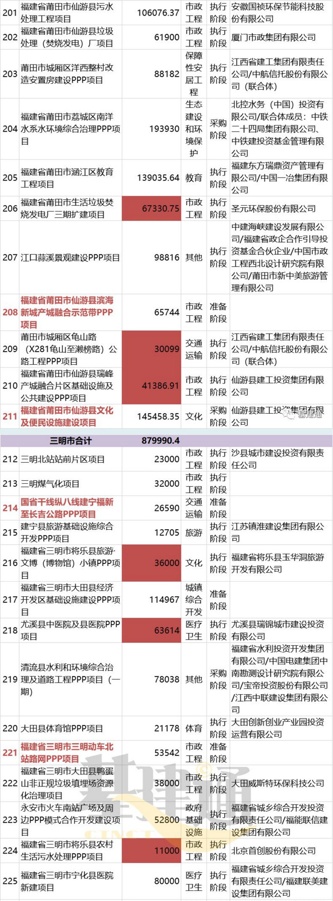 這也是福建省首次對外公布的進行PPP項目清庫后的留庫清單。