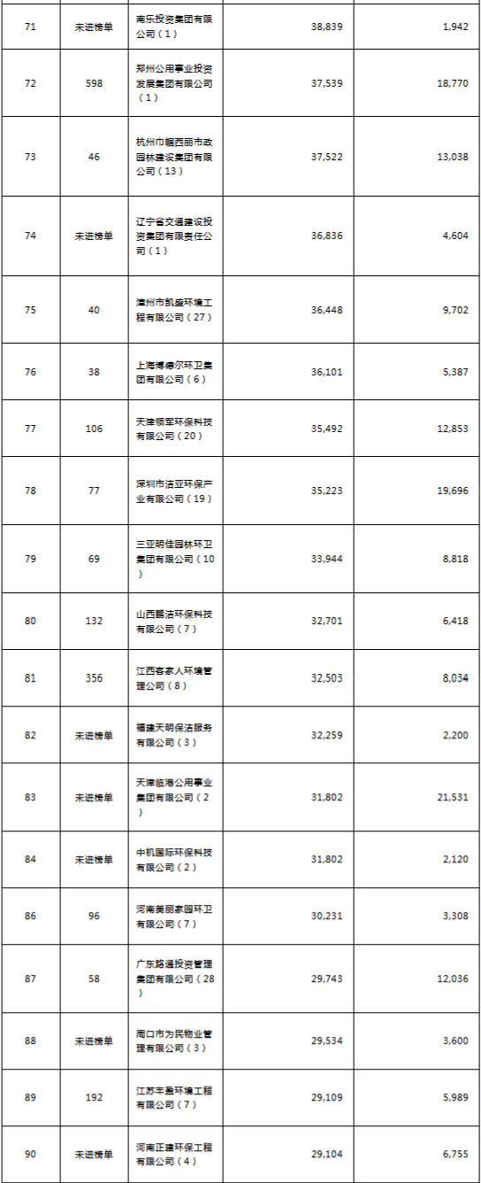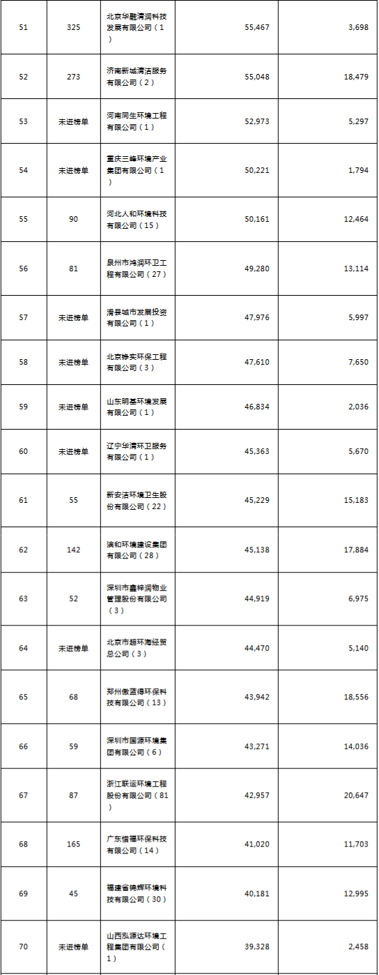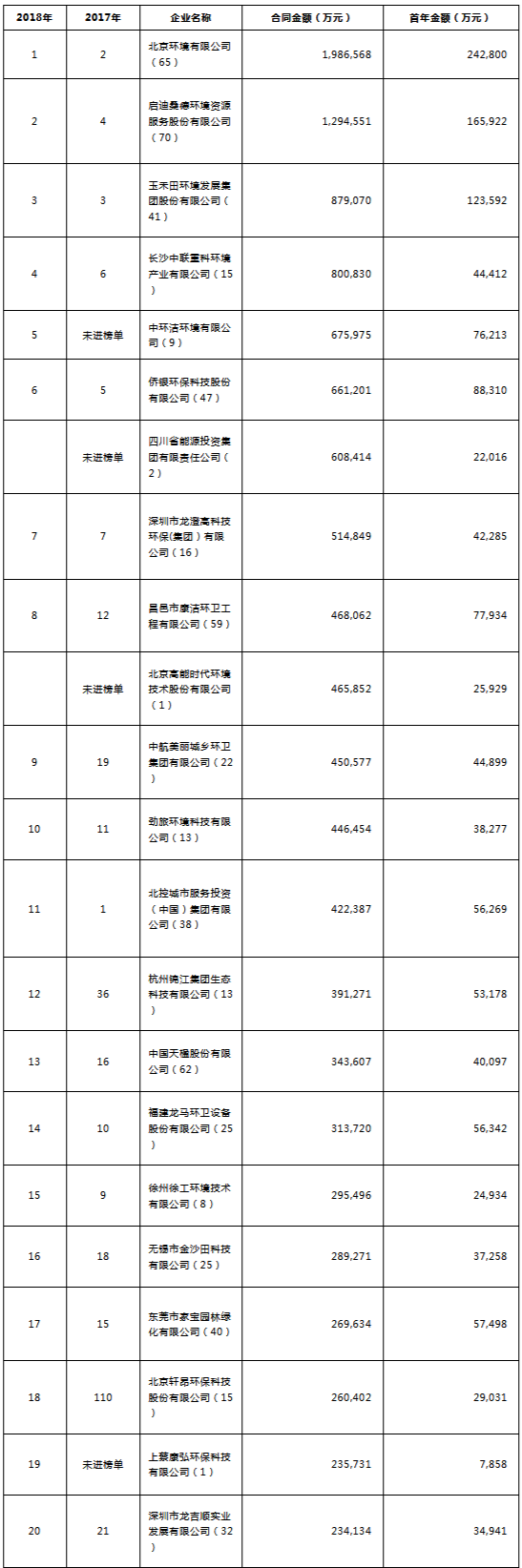 環(huán)境司南2018年度環(huán)衛(wèi)服務(wù)企業(yè)(簽約能力)百強(qiáng)榜