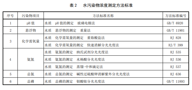 在水污染物監(jiān)測方面,水質(zhì)取樣在污水處理廠處理工藝末端排放口。按照《排污口規(guī)范化整治技術(shù)要求(試行)》的有關(guān) 要求,在污染物排放監(jiān)控位置須設(shè)置永久性排污口標(biāo)志。對排放水污染物濃度的測定采用下表所列的方法標(biāo)準(zhǔn)。