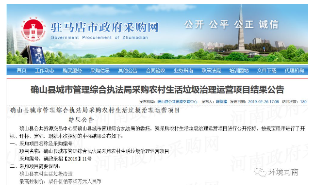 確山縣農村生活垃圾治理運營項目中標信息