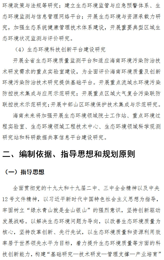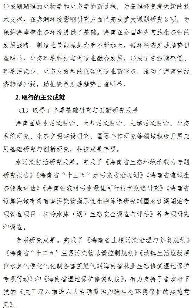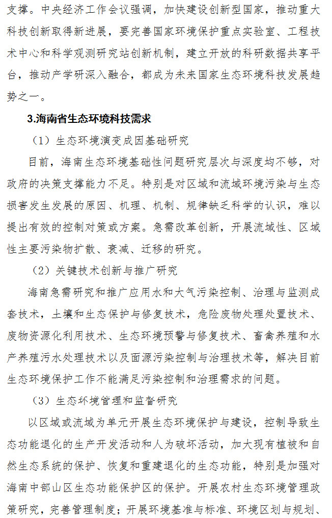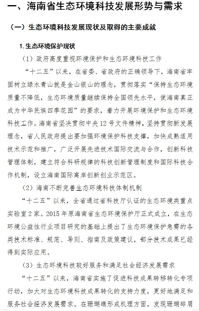 為提高全省生態(tài)環(huán)境科技發(fā)展水平,發(fā)揮科技創(chuàng)新對生態(tài)環(huán)境保護的支撐保障作用,根據(jù)《國家環(huán)境保護“十三五”科技發(fā)展規(guī)劃綱要》《海南省“十三五”科技發(fā)展規(guī)劃》《海南省“十三五”生態(tài)環(huán)境保護規(guī)劃》和《中共海南省委 海南省人民政府關于加快科技創(chuàng)新的實施意見》,我廳組織擬定了《海南省生態(tài)環(huán)境科技發(fā)展規(guī)劃(2019-2025)》,現(xiàn)印發(fā)你們,請認真貫徹落實。