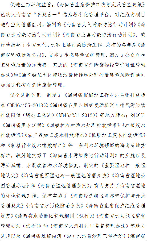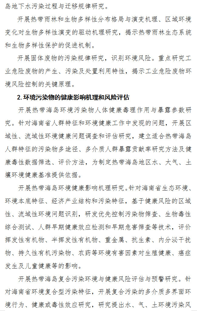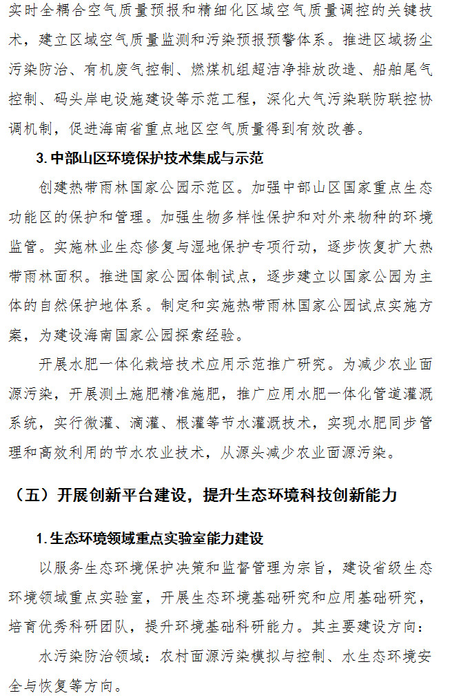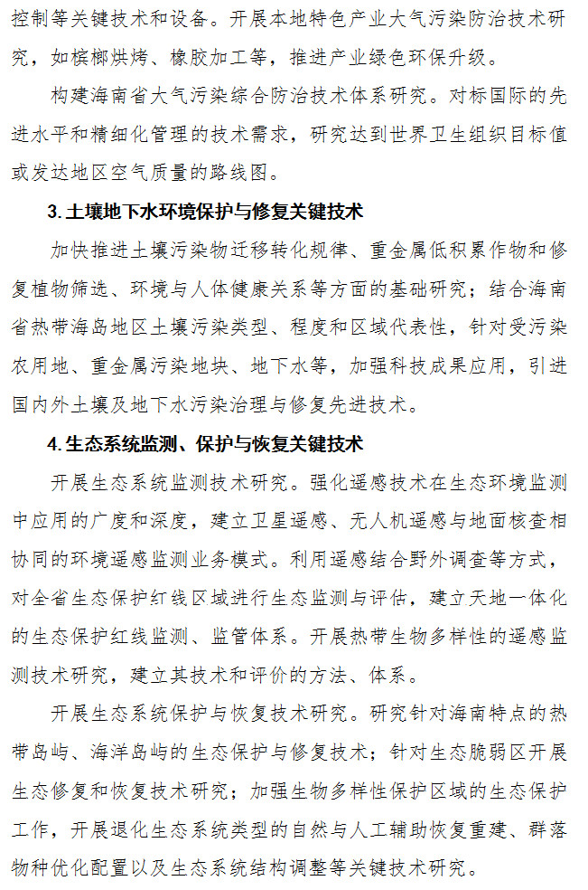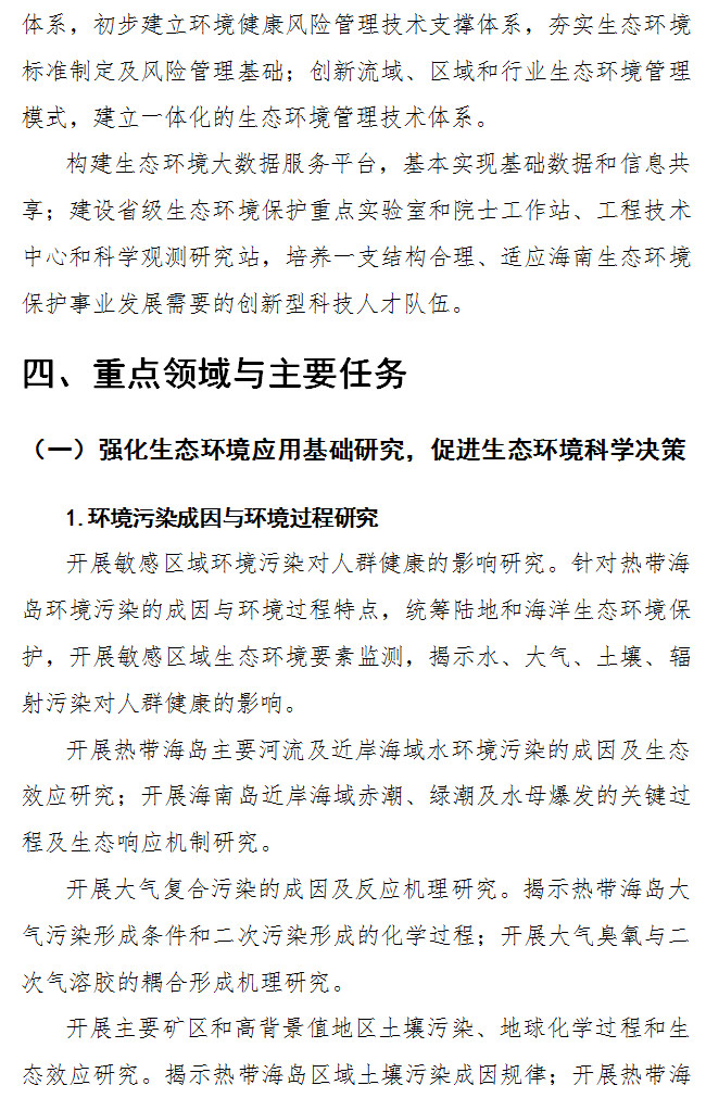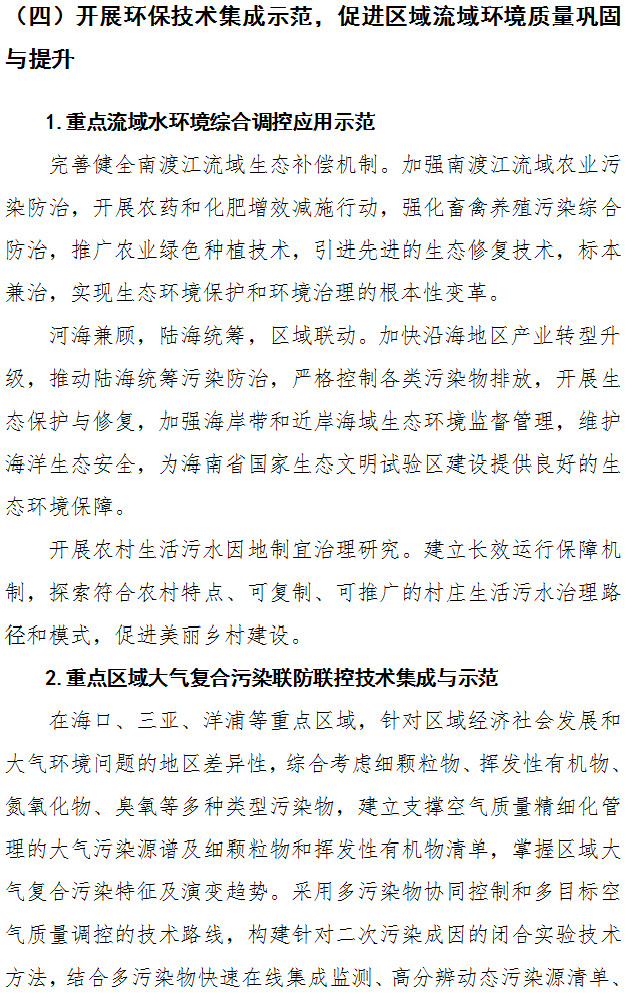 近日,海南省印發(fā)了《海南省生態(tài)環(huán)境科技發(fā)展規(guī)劃(2019-2025)》的通知,通知規(guī)定要強化大氣環(huán)境監(jiān)測和大氣污染綜合防治關鍵技術、水環(huán)境監(jiān)測及流域水污染控制與治理成套技、土壤地下水環(huán)境保護與修復關鍵技術、固體廢物處理處置及有毒有害污染物控制技術等,全文如下: