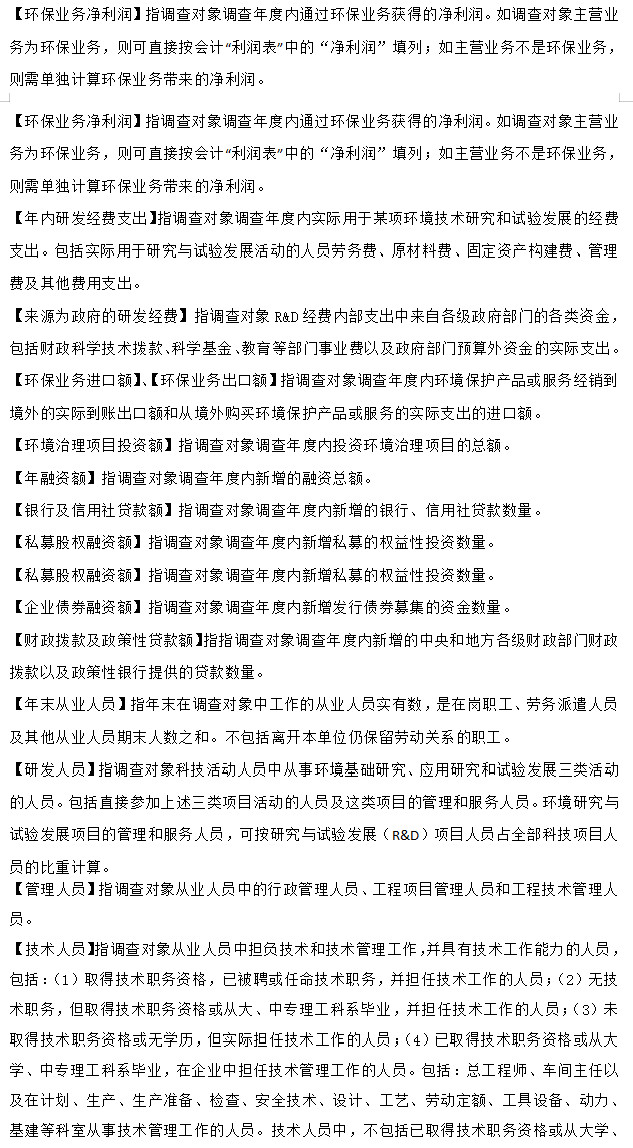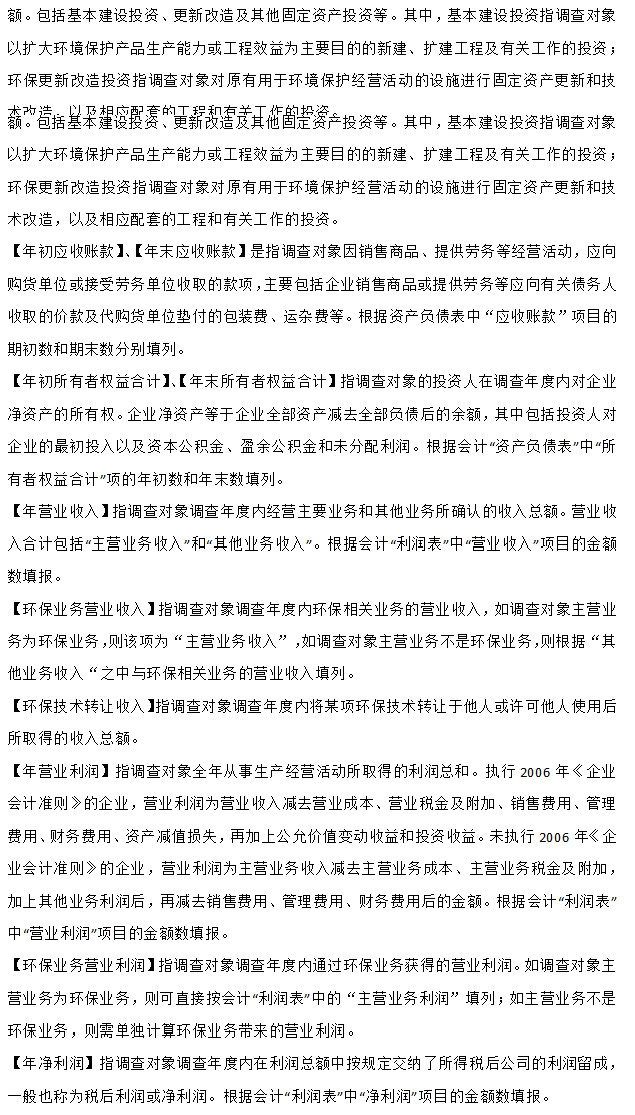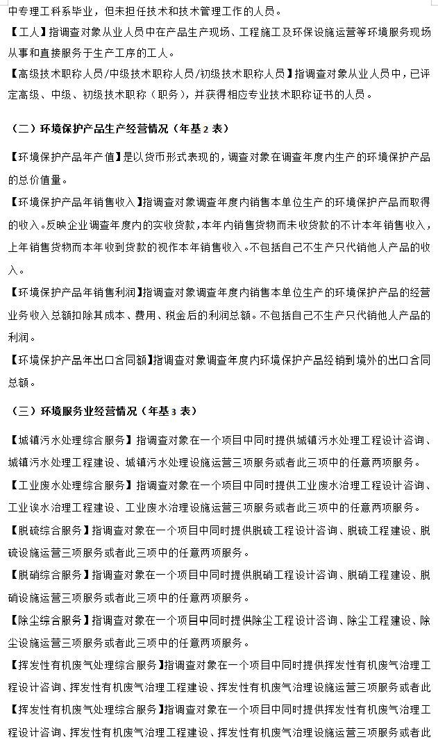 調(diào)查內(nèi)容包括企業(yè)的基本情況、環(huán)境保護(hù)產(chǎn)品生產(chǎn)經(jīng)營(yíng)情況、環(huán)境服務(wù)業(yè)經(jīng)營(yíng)情況等。
