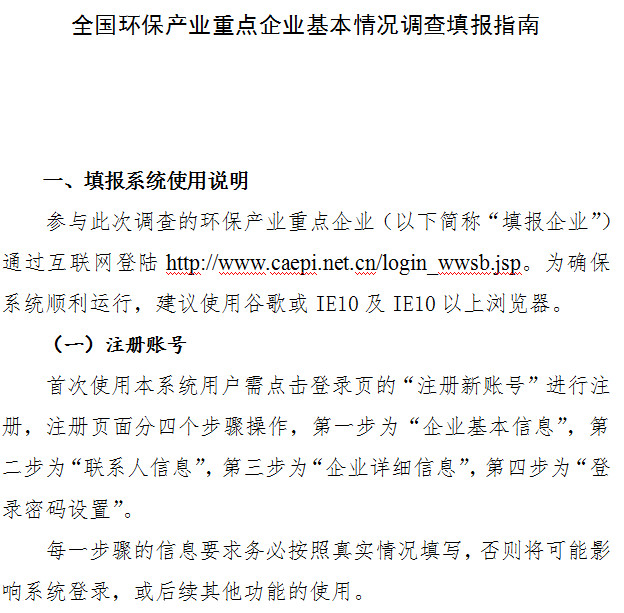 請(qǐng)?zhí)顖?bào)企業(yè)登錄調(diào)查數(shù)據(jù)填報(bào)平臺(tái)http://www.caepi.net.cn/login_wwsb.jsp,下載并認(rèn)真閱讀《全國(guó)環(huán)保產(chǎn)業(yè)重點(diǎn)企業(yè)基本情況調(diào)查方案》(附件1)及《填報(bào)指南》(附件2),依據(jù)填報(bào)要求填寫(xiě)相關(guān)報(bào)表,并于2019年4月25日前完成數(shù)據(jù)上報(bào)。