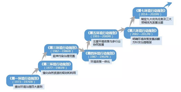應(yīng)巴黎會(huì)議要求,歐共體委員會(huì)在1973年推出了歐共體第一個(gè)環(huán)境行動(dòng)規(guī)劃(1973-1976),規(guī)定了5年內(nèi)歐共體環(huán)境政策的目標(biāo)、內(nèi)容,并對(duì)環(huán)境政策內(nèi)容進(jìn)行了具體闡釋。截止目前,歐盟已經(jīng)通過(guò)了7份環(huán)境行動(dòng)計(jì)劃,對(duì)歐盟環(huán)境政策的完善、共同體內(nèi)的環(huán)境保護(hù)水平的提高有重大意義。