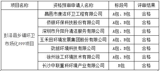 原標(biāo)題:3.03億江西省彭澤縣鄉(xiāng)鎮(zhèn)環(huán)衛(wèi)市場(chǎng)化PPP項(xiàng)目中標(biāo)公示,康潔環(huán)衛(wèi)獲A包