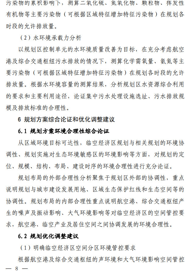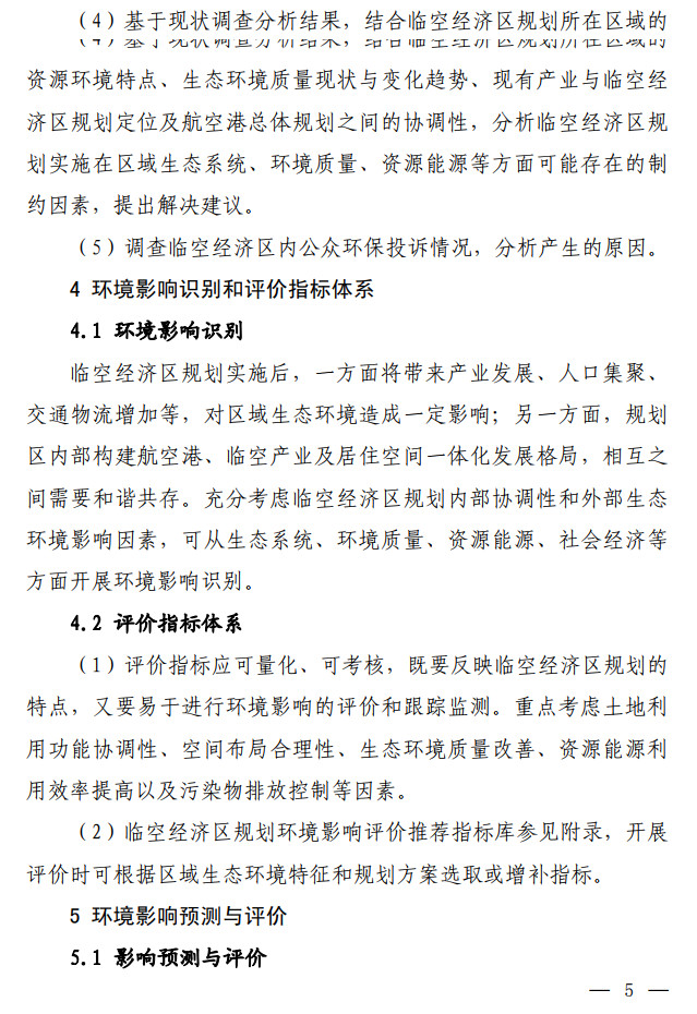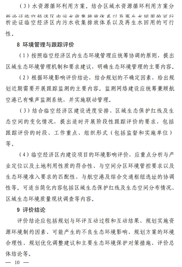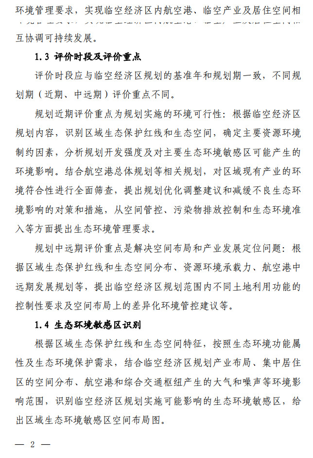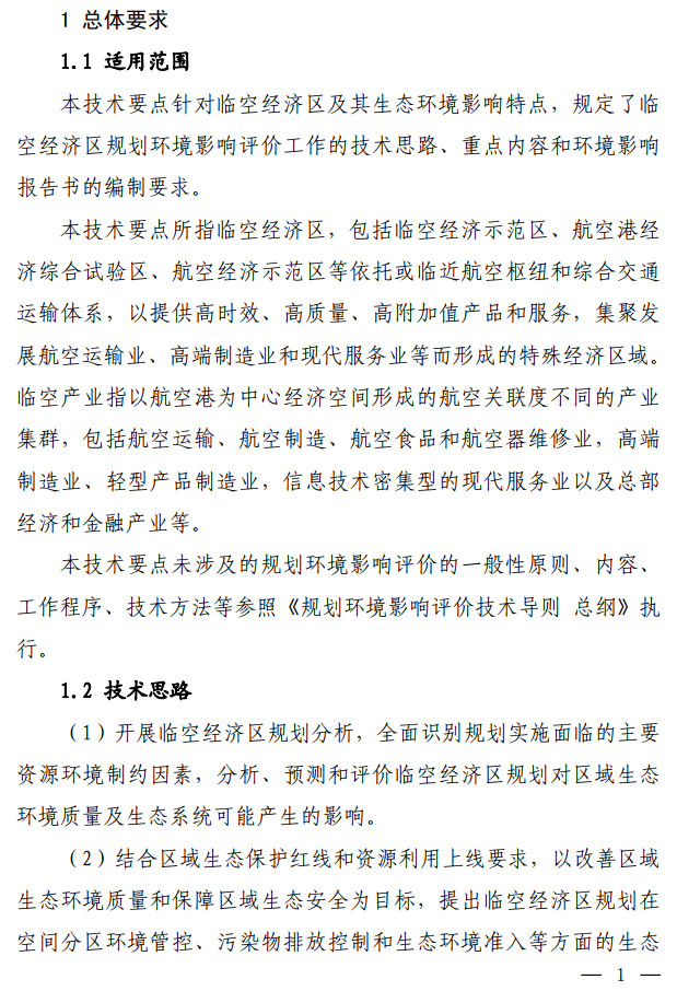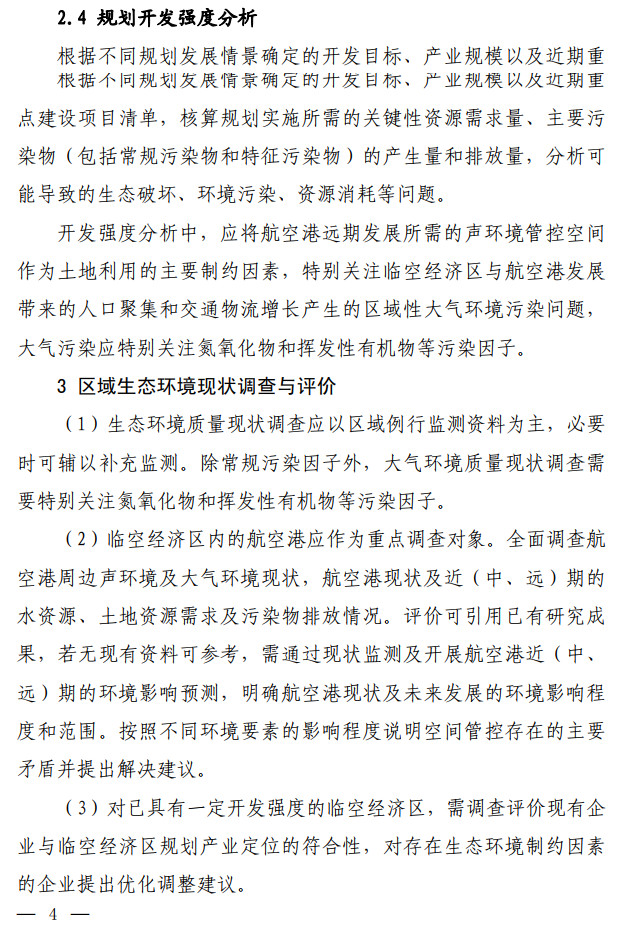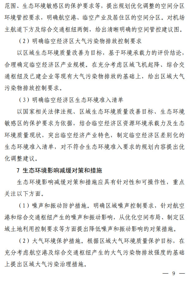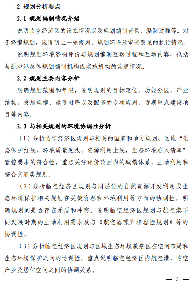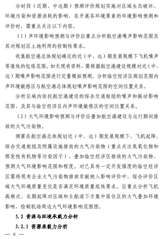 生態(tài)環(huán)境部發(fā)布了關(guān)于印發(fā)《臨空經(jīng)濟(jì)區(qū)規(guī)劃環(huán)境影響評價(jià)技術(shù)要點(diǎn)(試行)》的通知,該文件說明了全面調(diào)查航空港周邊聲環(huán)境及大氣環(huán)境現(xiàn)狀,航空港現(xiàn)狀及近(中、遠(yuǎn))期的水資源、土地資源需求及污染物排放情況。評價(jià)可引用已有研究成 果,若無現(xiàn)有資料可參考,需通過現(xiàn)狀監(jiān)測及開展航空港近(中、 遠(yuǎn))期的環(huán)境影響預(yù)測,明確航空港現(xiàn)狀及未來發(fā)展的環(huán)境影響程 度和范圍。按照不同環(huán)境要素的影響程度說明空間管控存在的主要矛盾并提出解決建議。全文如下: