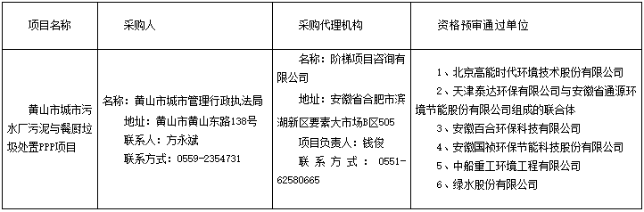 項目名稱:黃山市城市污水廠污泥與餐廚垃圾處置PPP項目