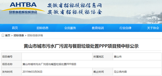 黃山市城市污水廠污泥與餐廚垃圾處置PPP項目發(fā)布預(yù)中標公示,天津泰達環(huán)保有限公司與安徽省通源環(huán)境節(jié)能股份有限公司組成的聯(lián)合體成為預(yù)中標社會資本方。