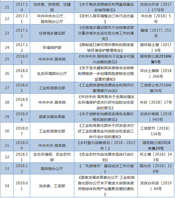“十三五”以來,國家頻繁出臺(tái)相關(guān)政策為“無廢城市”的建設(shè)進(jìn)行鋪墊,這些政策對(duì)于“無廢城市”建設(shè)發(fā)展影響重大、指導(dǎo)意義深遠(yuǎn)。