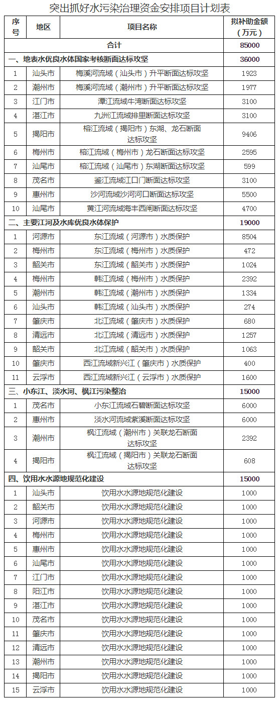 1.突出抓好水污染治理資金安排計(jì)劃表