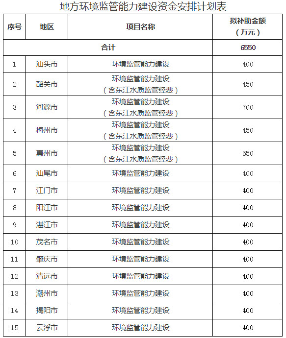 5.地方環(huán)境監(jiān)管能力建設(shè)資金安排計(jì)劃表