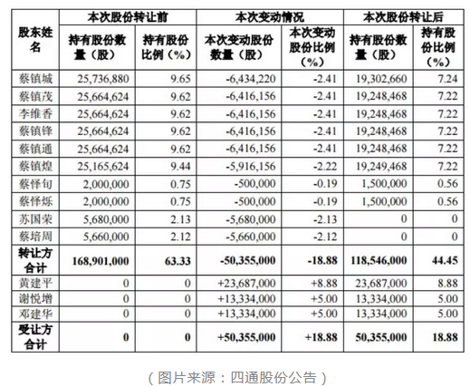 3月8日晚間,四通股份公告稱,公司實(shí)控人、部分股東擬將持有的公司無(wú)限售流通股5035.5萬(wàn)股股份(占公司股本總額的18.88%)以協(xié)議轉(zhuǎn)讓的方式分別轉(zhuǎn)讓給黃建平、謝悅增、鄧建華。