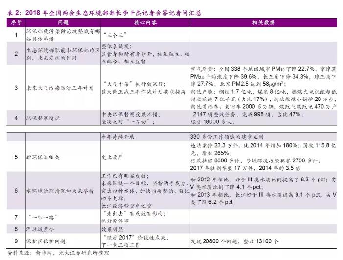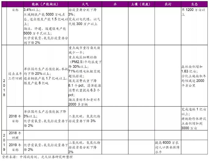 回顧今年的政府工作報告,除了在歷年重點關(guān)注的大氣污染治理方面,新加入了鋼鐵行業(yè)超低排放改造、汾渭平原等治理的重點工作外,我們認為有下列內(nèi)容值得重點關(guān)注: