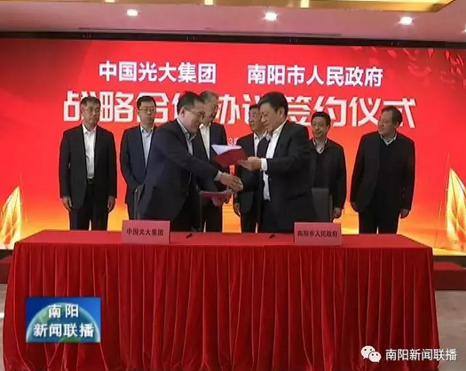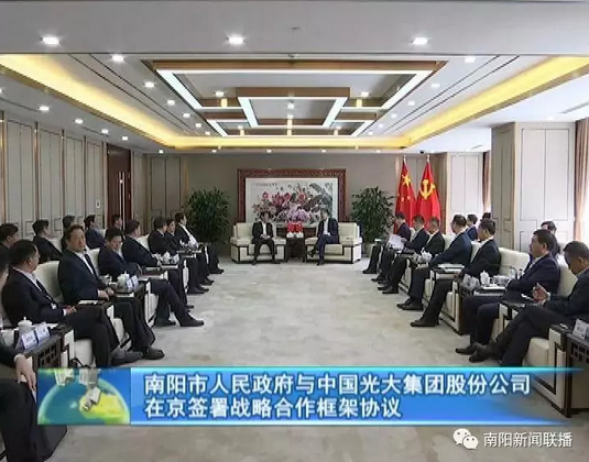 3月15號(hào),南陽(yáng)市人民政府與中國(guó)光大集團(tuán)股份公司在京簽署戰(zhàn)略合作框架協(xié)議。雙方約定,本著友好合作、互利共贏的原則,充分利用各自資源優(yōu)勢(shì),傾力創(chuàng)造有利條件,持續(xù)鞏固擴(kuò)大環(huán)保、金融兩個(gè)重點(diǎn)領(lǐng)域,深入挖掘文旅、康養(yǎng)兩個(gè)重要潛力點(diǎn),積極探索農(nóng)村遠(yuǎn)程醫(yī)療、美麗鄉(xiāng)村建設(shè)兩個(gè)關(guān)鍵創(chuàng)新點(diǎn),不斷推進(jìn)全方位、多領(lǐng)域深層合作。
