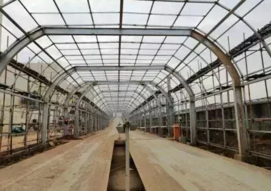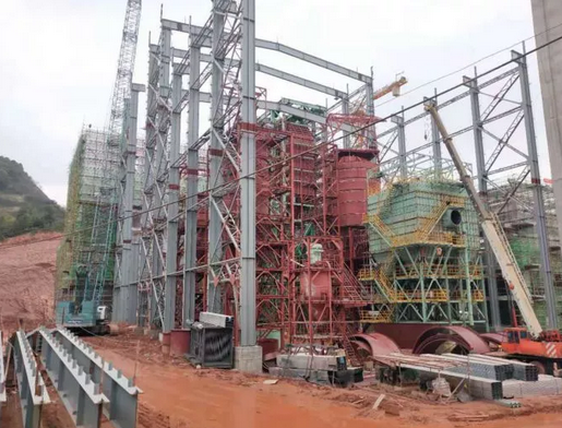 2、煙氣處理:灰渣輸送機安裝完成80%;屋面梁吊裝3榀;二期反應塔錐體組拼完成;煙氣處理外保溫架體搭設完成;