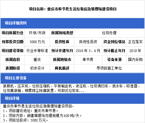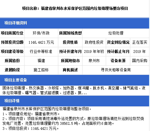 中項網(wǎng)獨家授權(quán)北極星固廢網(wǎng)發(fā)布最新垃圾處理項目(2019年3月18日更新),其中包括垃圾填埋場項目、城鄉(xiāng)一體化垃圾處理轉(zhuǎn)運站項目等垃圾處理項目。具體內(nèi)容如下: