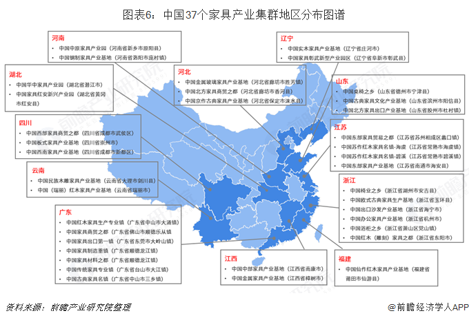 中國37個家具產(chǎn)業(yè)集群地區(qū)分布圖譜