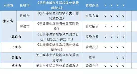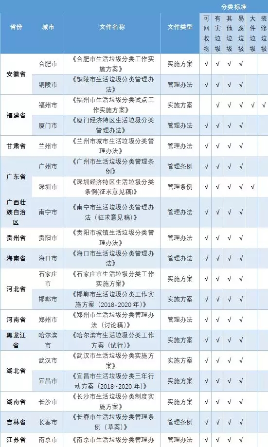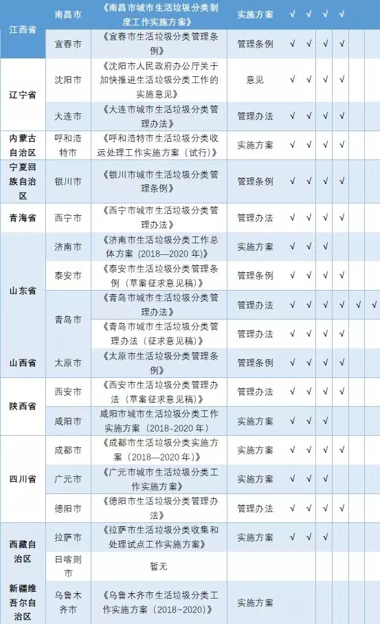 【附】46個重點城市垃圾分類專項文件出臺情況統(tǒng)計表