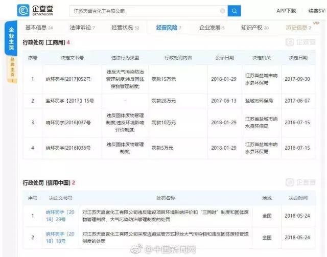 該公司共有6條行政處罰信息,處罰原因?yàn)檫`反固體廢物管理制度、違反環(huán)境影響評(píng)價(jià)制度、違反大氣污染防治管理制度等。2018年曾因涉及13項(xiàng)安全隱患,被國家安全監(jiān)管總局辦公廳發(fā)函督促整改。