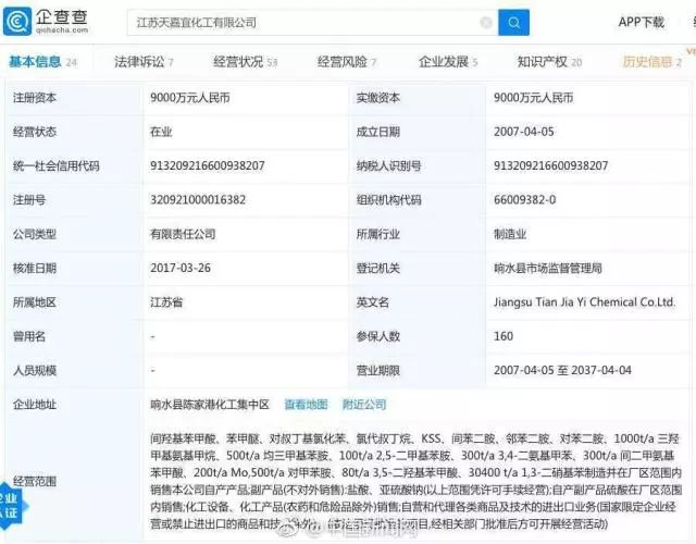 據(jù)@鹽城發(fā)布,3月21日下午14:48左右,位于響水縣生態(tài)化工園區(qū)的天嘉宜化工有限公司發(fā)生爆炸。