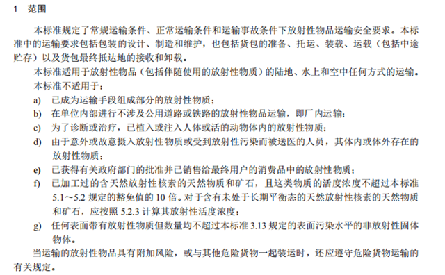 本標準適用于放射性物品(包括伴隨使用的放射性物質(zhì))的陸地、水上和空中任何方式的運輸。