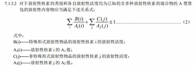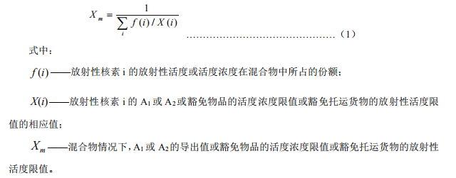 (5.2.3)對于含有多種放射性核素的混合物,可按下式確定放射性核素的基本值: