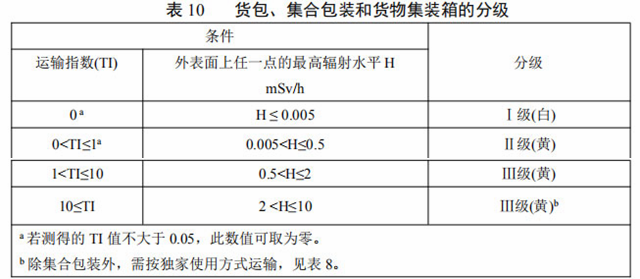 貨包或集合包裝的外表面上任一點的最高輻射水平應不超過2mSv/h,滿足下列任何一項情況除外(詳見附件5.3.1)。