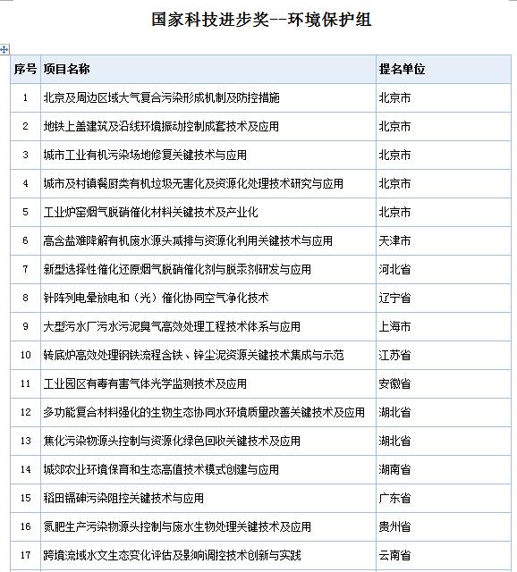 2019年度國家自然科學獎受理項目包括數(shù)學組、物理與天文學組、化學組等10個學科專業(yè)評審組;國家技術發(fā)明獎受理項目(通用項目)包括農(nóng)林養(yǎng)殖組、醫(yī)藥衛(wèi)生組 、國土資源組等10個學科專業(yè)評審組;國家科學技術進步獎受理項目(通用項目)包括了作物遺傳育種與園藝組、林業(yè)組、養(yǎng)殖業(yè)組等29個學科專業(yè)評審組。涉及鋼鐵超低排放、脫硝催化劑、廢水處理等環(huán)保項目。