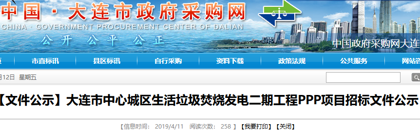 中國固廢網(wǎng)獲悉,4月11日,遼寧省大連市中心城區(qū)生活垃圾焚燒發(fā)電二期工程PPP項(xiàng)目發(fā)布招標(biāo)文件公示。